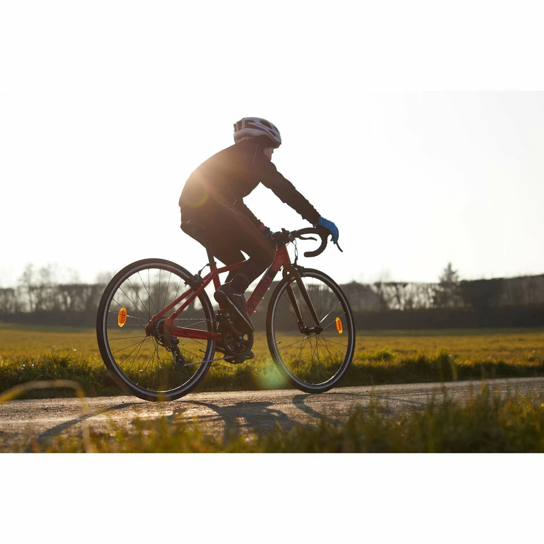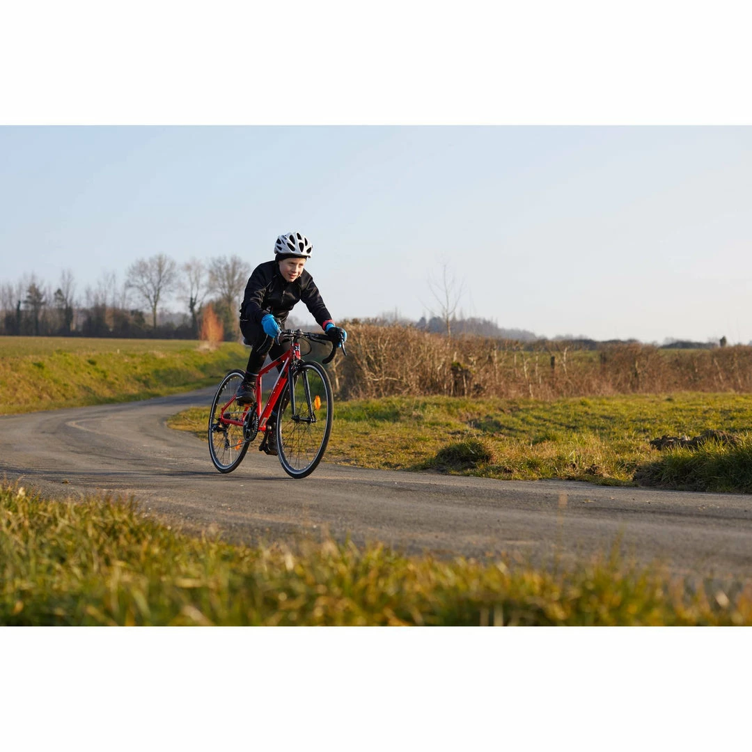 The B’Twin junior road bike with 650 wheels, aluminium frame, 7 Shimano speeds and a double braking system to enable the rider to easily adapt their position using the road handlebars.