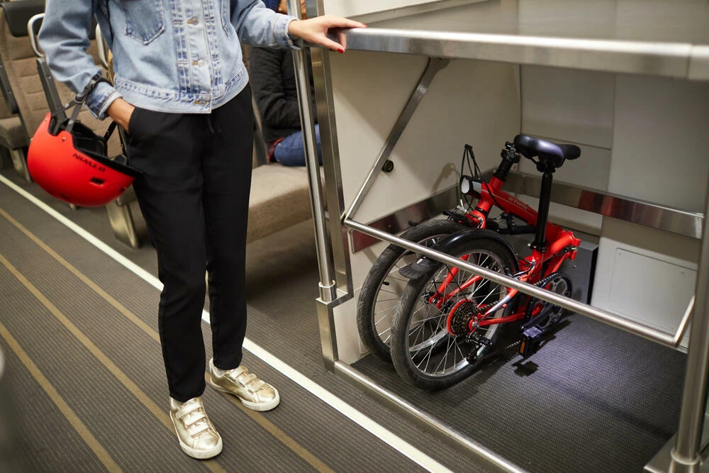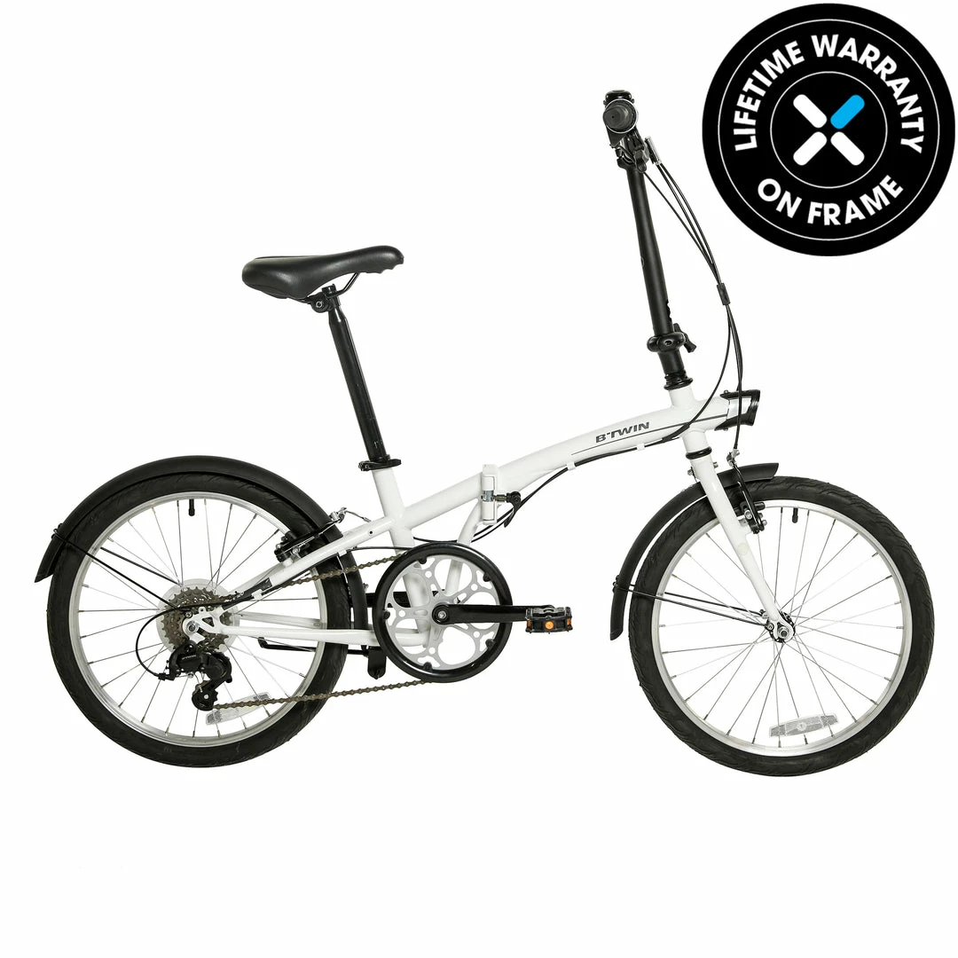 This bike is compatible with the TILT transport cover and the B’TWIN pannier rack for folding bikes.