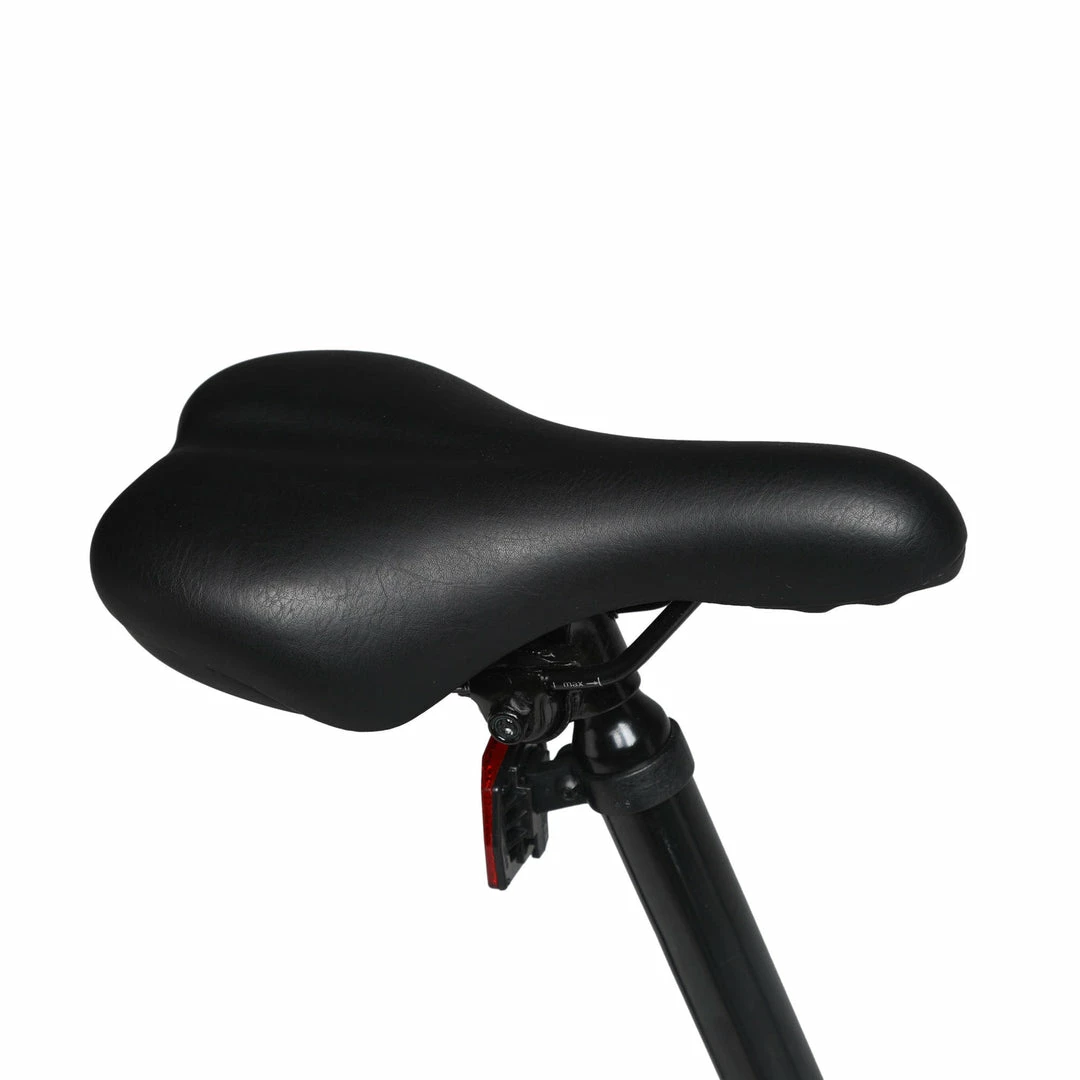 Comfortable, seamless foam saddle and steel seat post (diam: 31.6 mm).