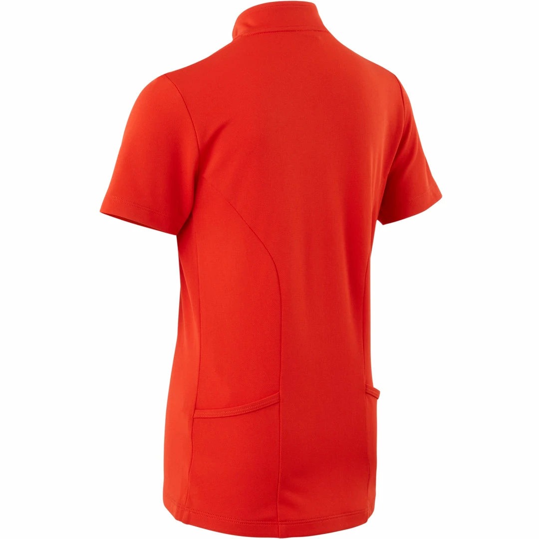 This kids’ lightweight, comfortable cycling jersey dries quickly.