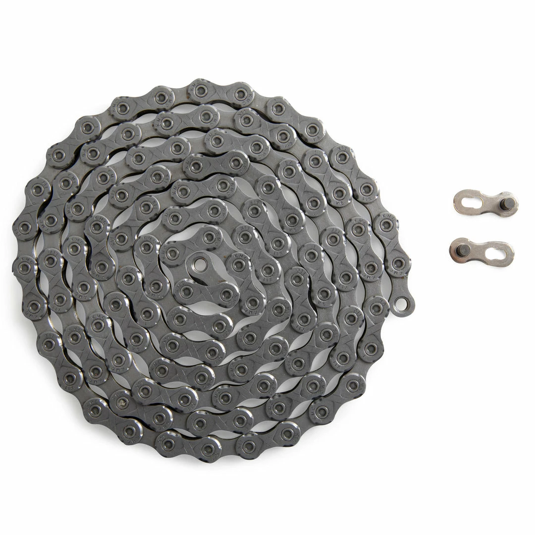 Our chain was designed in collaboration with KMC, a globally-recognized brand and a leader in bike drivetrain parts. The chain has 118 links and is sold with a quick release