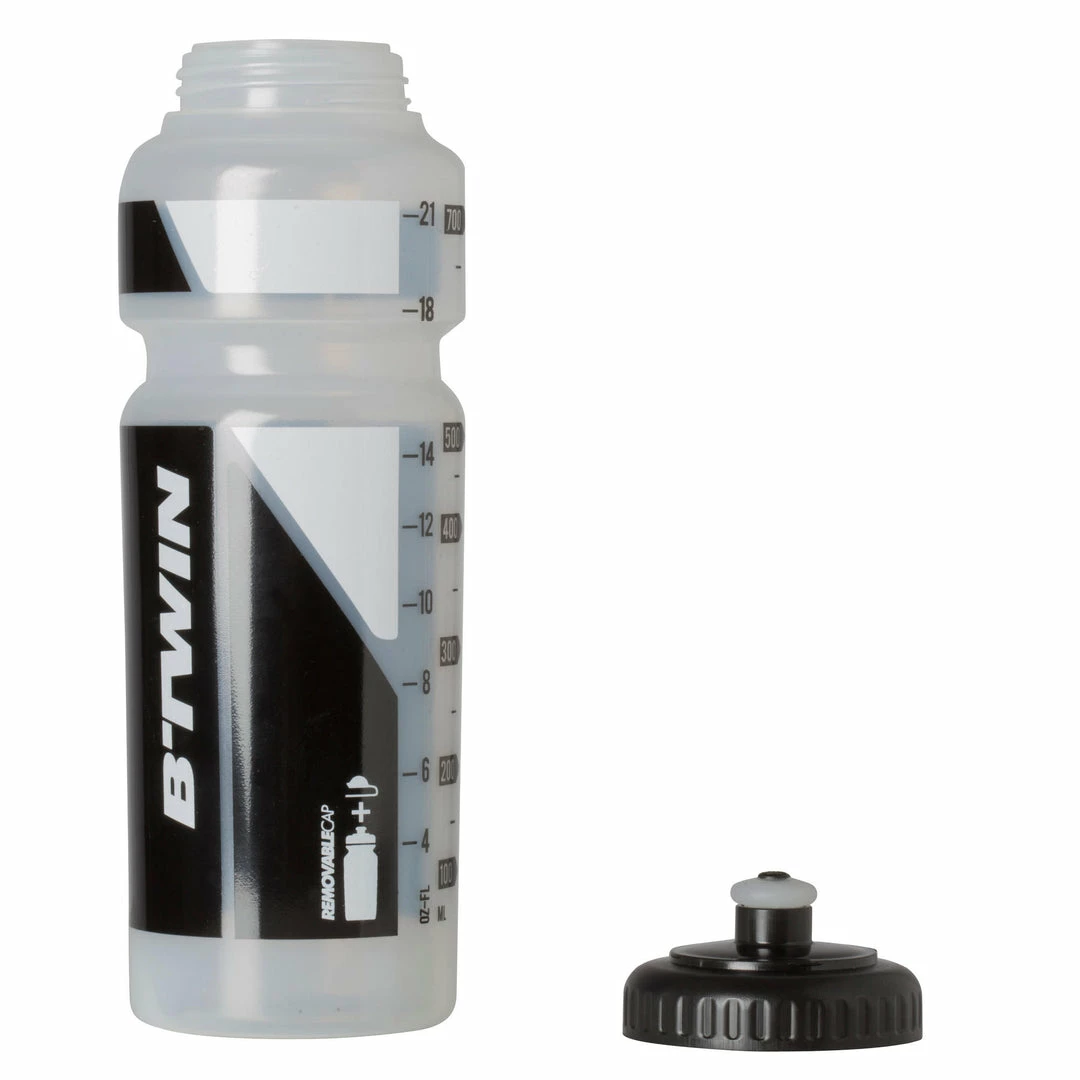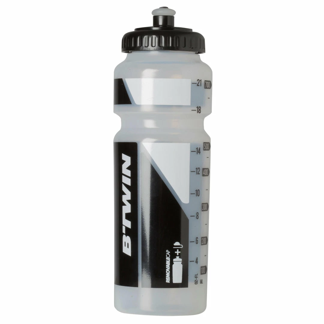 Large, 750 ml water bottle with an ergonomic design. Soft material lets you can easily drink as you ride.Securely held in a bottle cage. With removable protective cap!