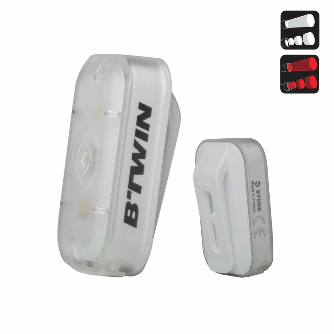 Set of 2 visibility lights for front and rear, rechargeable, LED lights that can clip on anywhere (helmet, clothing, compatible accessories, bike tube)