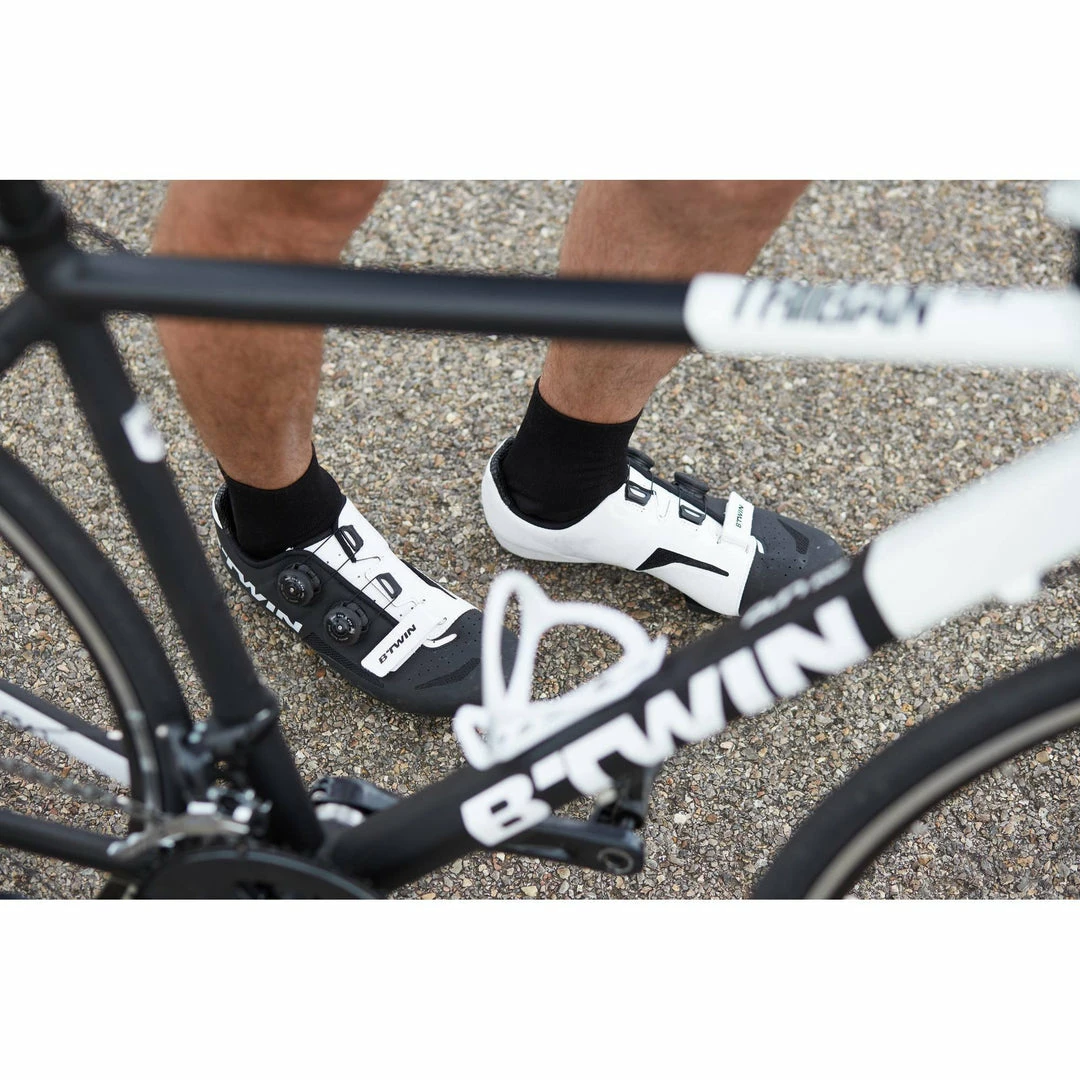 Cycling shoes developed in collaboration with pro cycling racer Jean-Christophe Péraud from AG2R La Mondiale.nLiner made from 3 high quality layers without seams. Heel with silicone.
