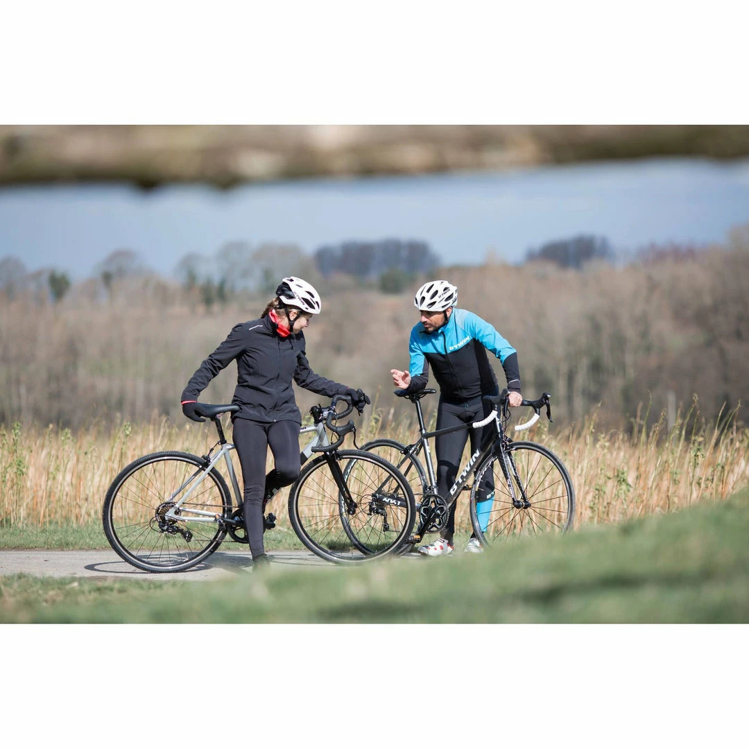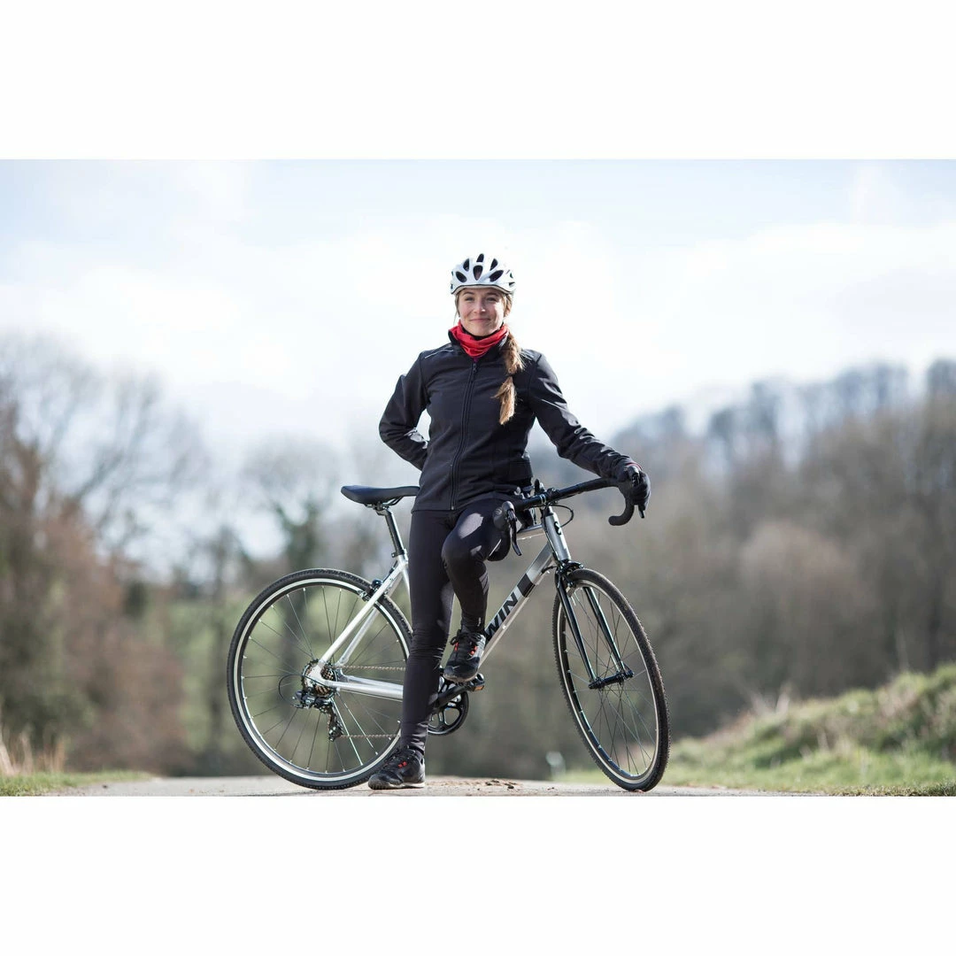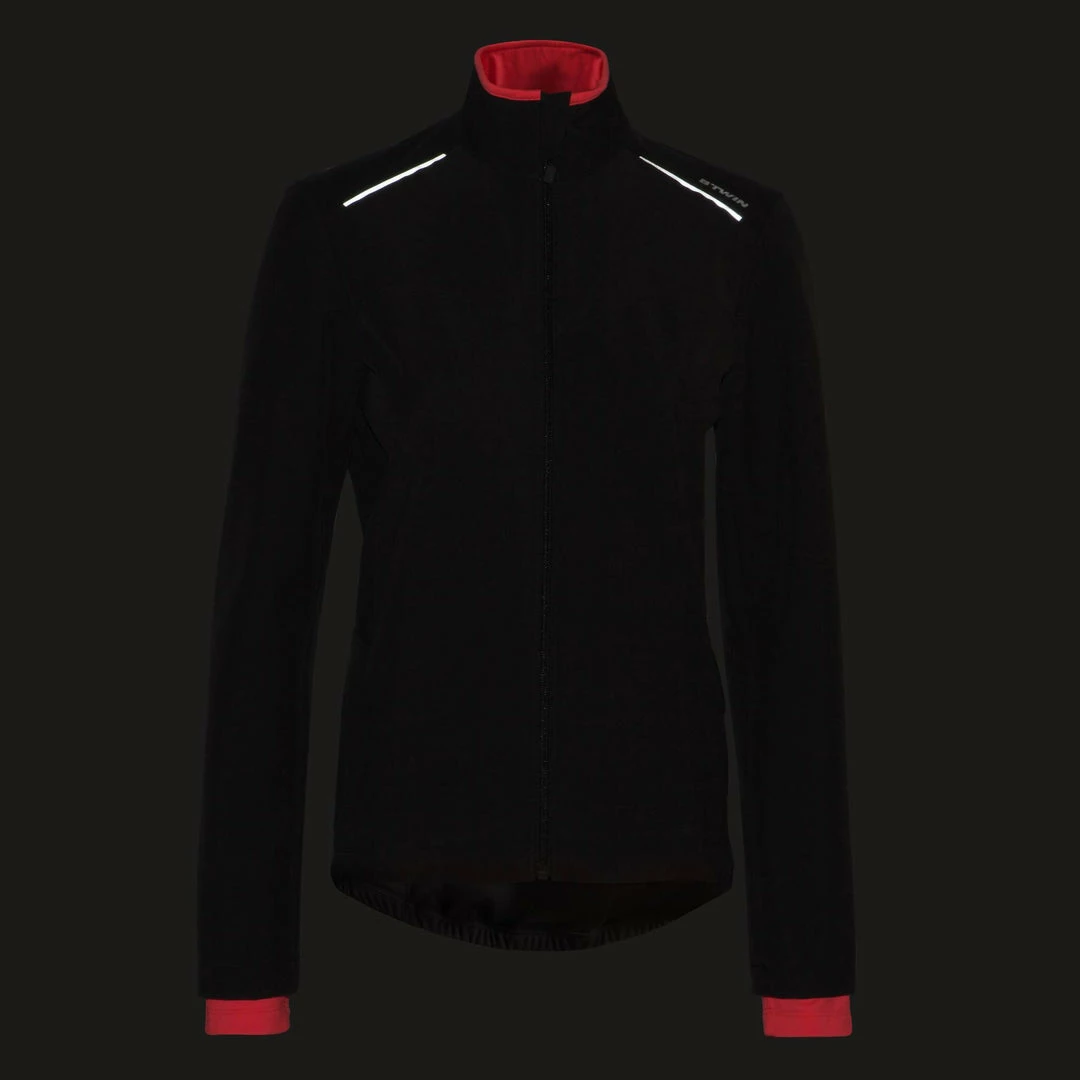 This women’s cycling jacket will keep you warm with its fleece lining and high collar to protect the neck.