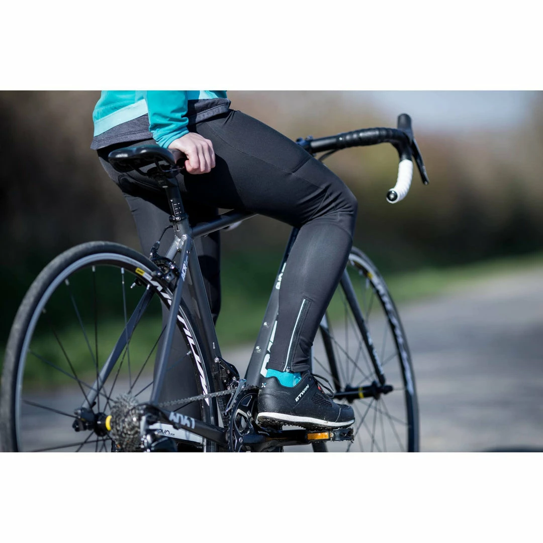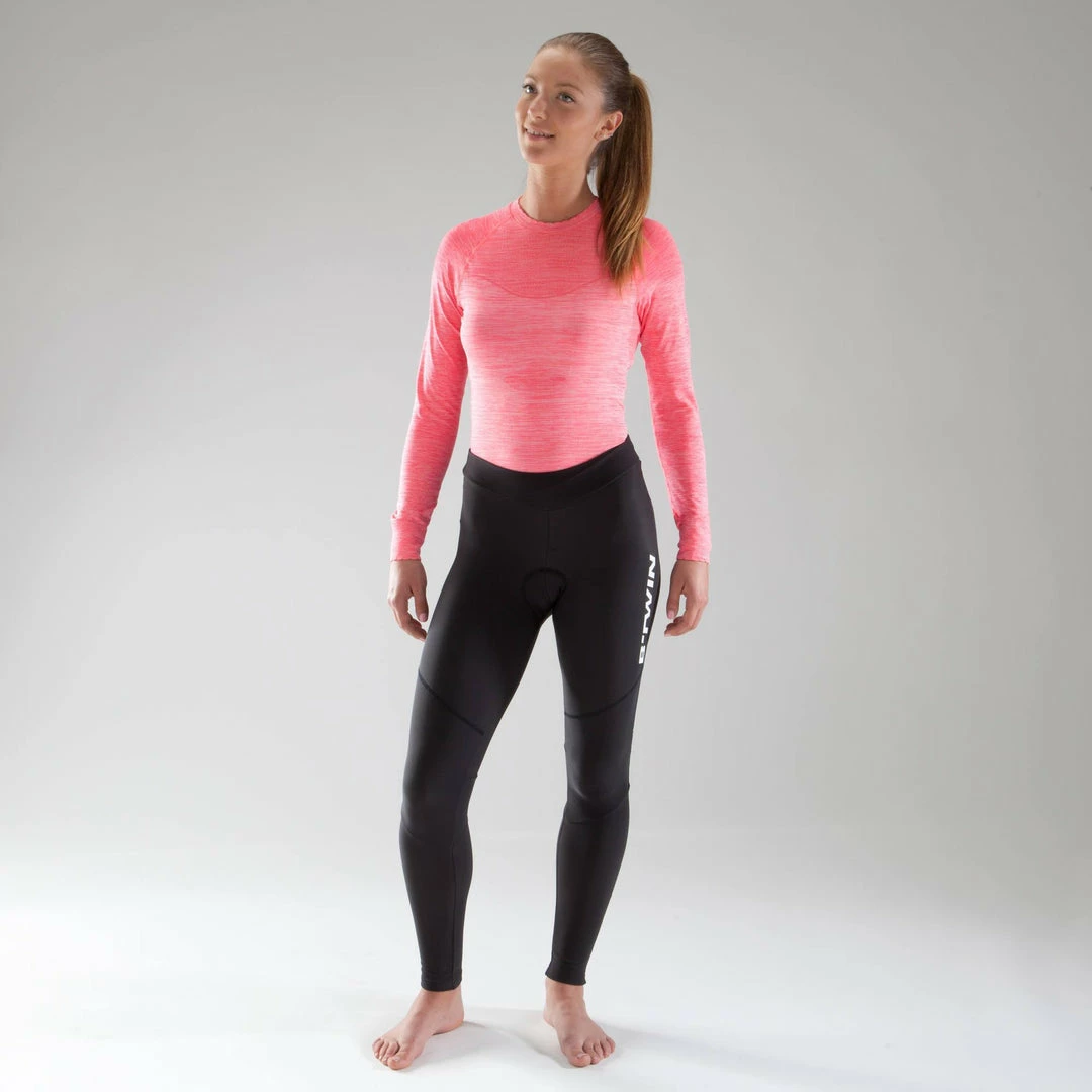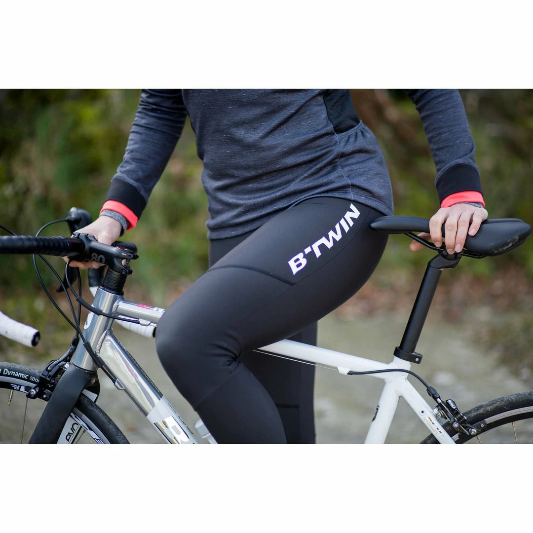 These B’Twin women’s cycling tights are very comfortable thanks to the ergonomic seat and wide waistband. The fleece lining protects against the cold in winter conditions.