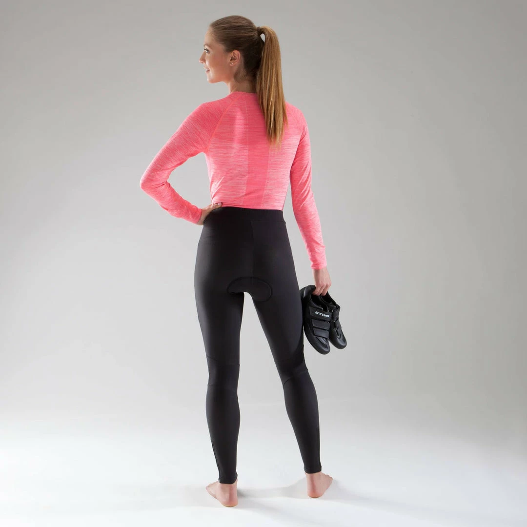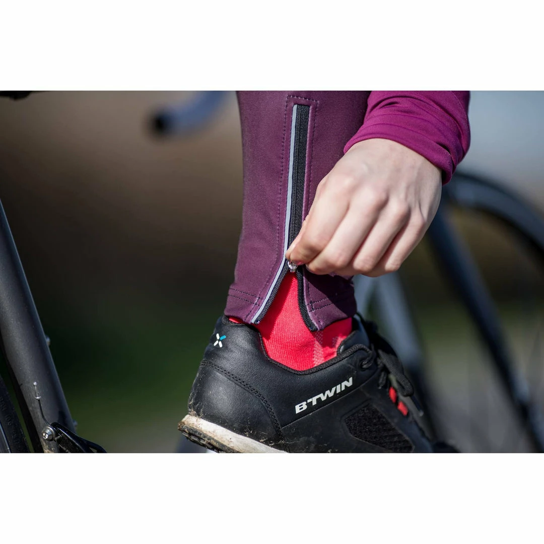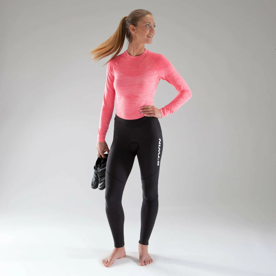 These B’Twin women’s cycling tights are very comfortable thanks to the ergonomic seat and wide waistband. The fleece lining protects against the cold in winter conditions.