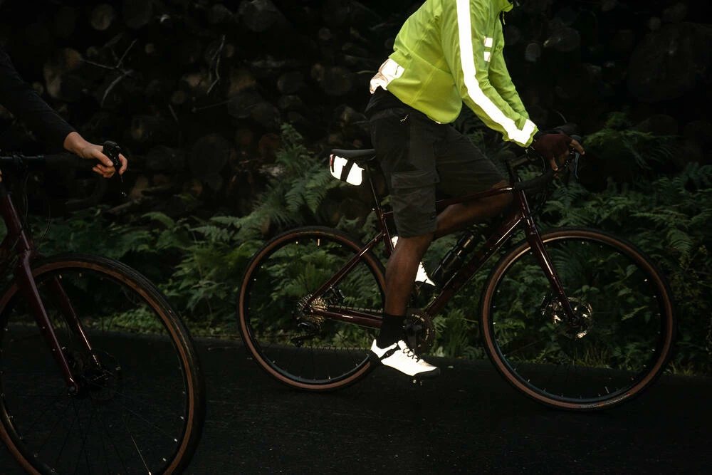 This material allows our shoes to reflect light effectively (both sunlight and headlights).