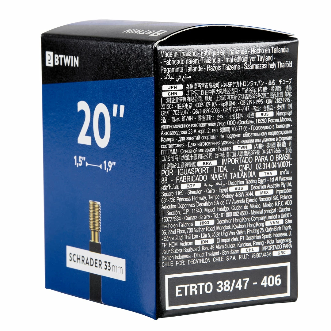 This inner tube is suitable for 20″ diameter tires with 1.50 to 1.90 section with a 33 mm Schrader valve.