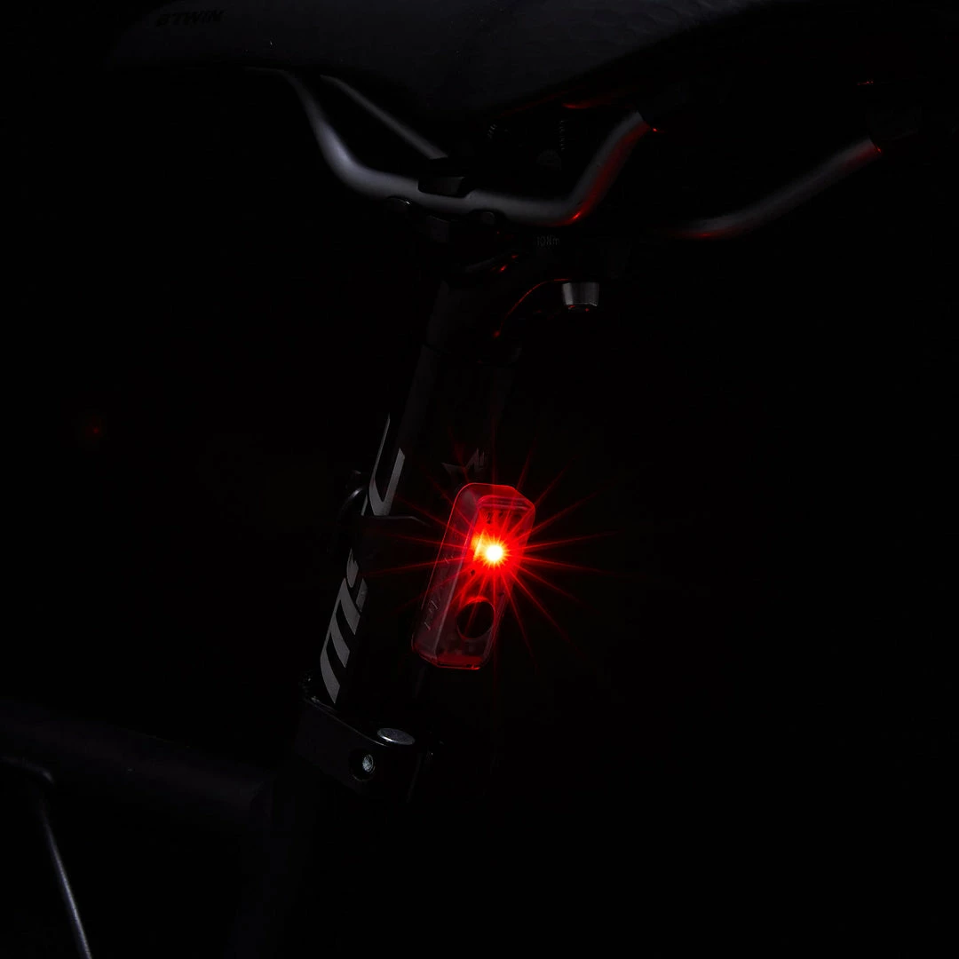 Rear, rechargeable visibility light that clips on anywhere (helmet, clothing, compatible accessories, bike tube)
