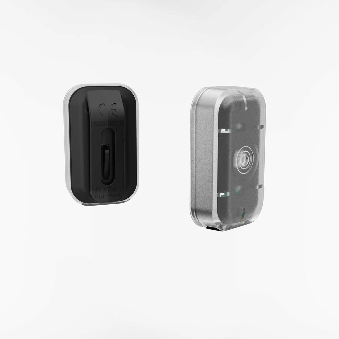 One set of visibility lights for front and rear, rechargeable, LED lights that can clip on anywhere (helmet, clothing, compatible accessories, bike tube)
