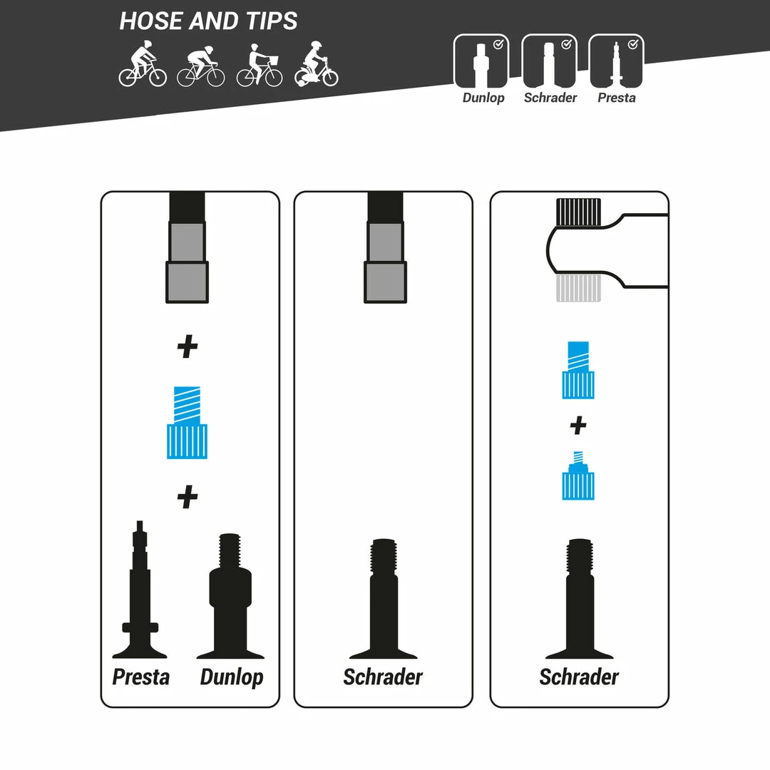 If you lose or wear out your hose, replace it with this kit that adapts to all types of valves.