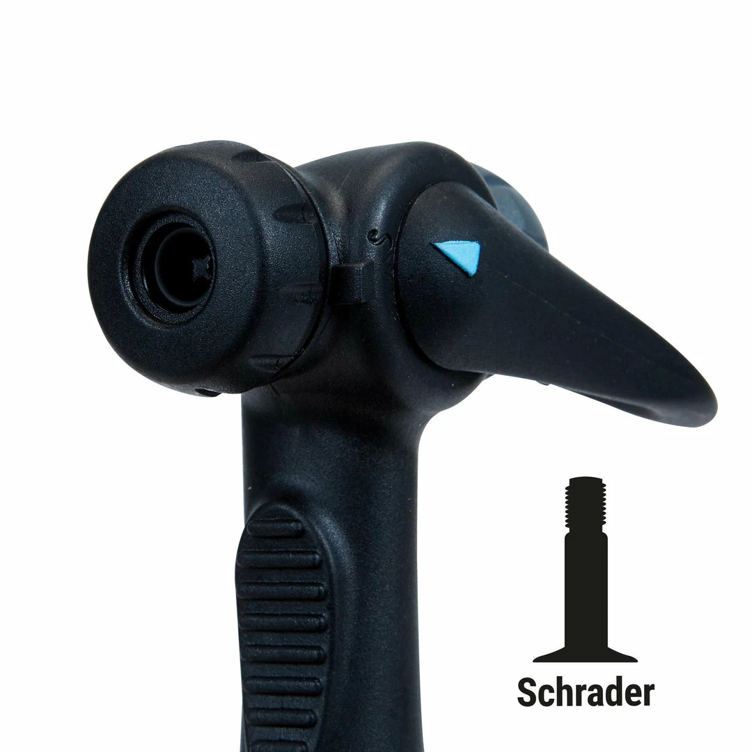 Universal pump for all types of valve (Presta/Dunlop/Schrader). Fits different valves thanks to the dual head. Aluminum casing.