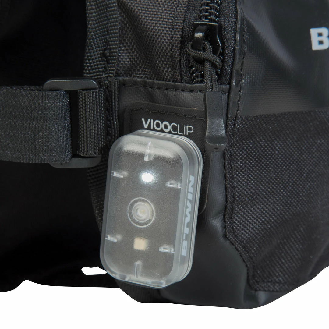 This product has a hook for attaching a VIOO Clip, an LED light that can be clipped on and off anywhere in an instant. With a red or white light that can be used in continuous or flashing mode, the Vioo Clip makes you clearly visible from up to 130 yds away. Battery life is 9 hours in flashing mode, 4ยฝ hours in continuous mode. Easy to charge using a USB cable.