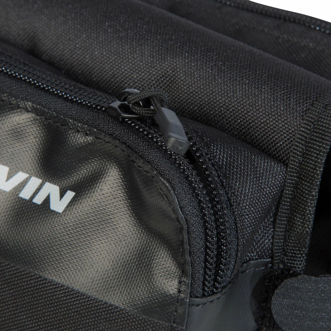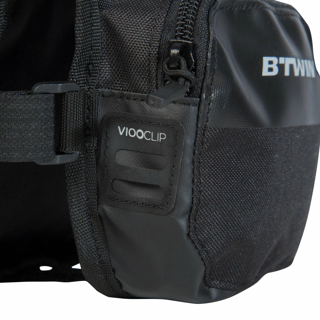 This double bag can be attached to most flat-bar frames. Fits most mountain, hybrid, road and folding bikes.