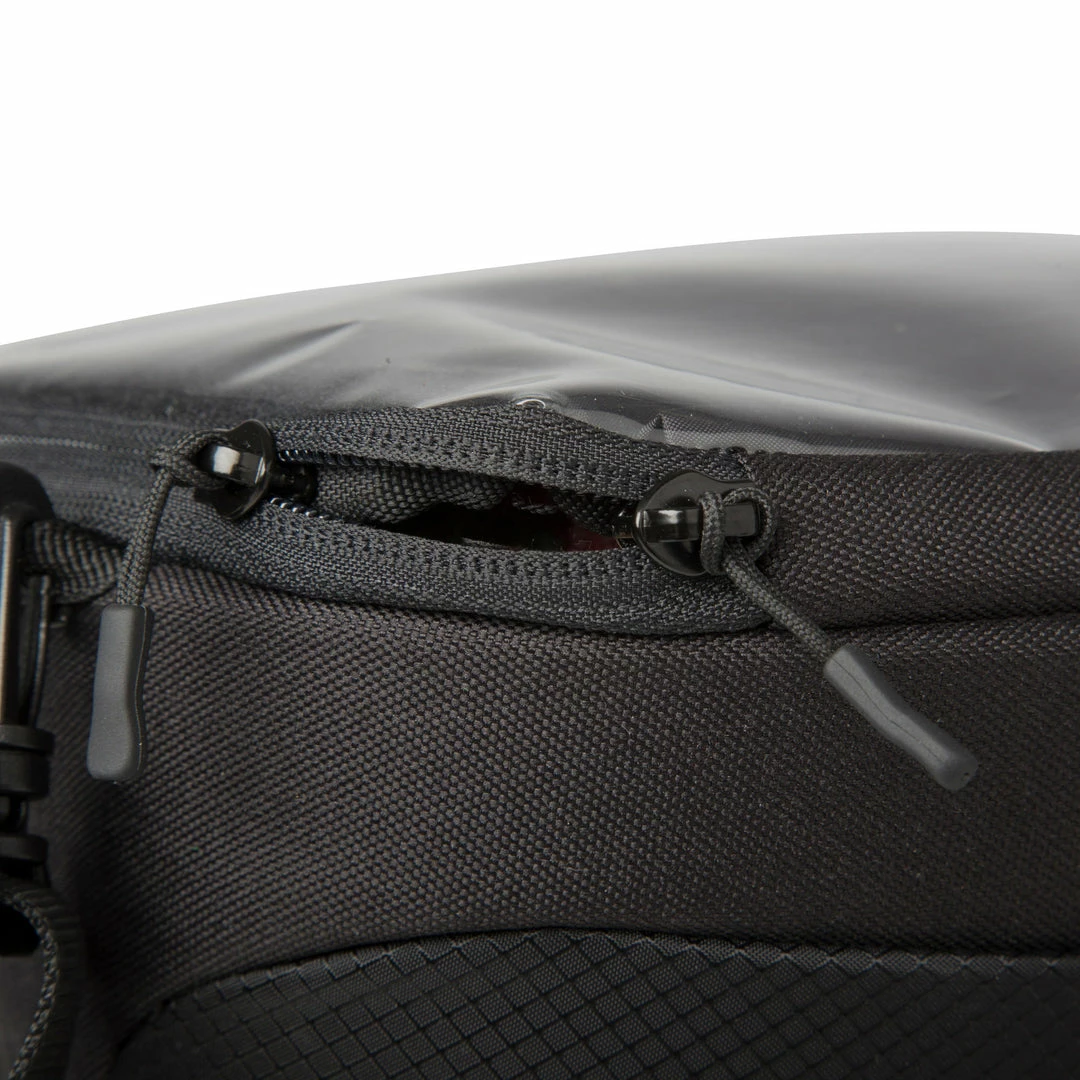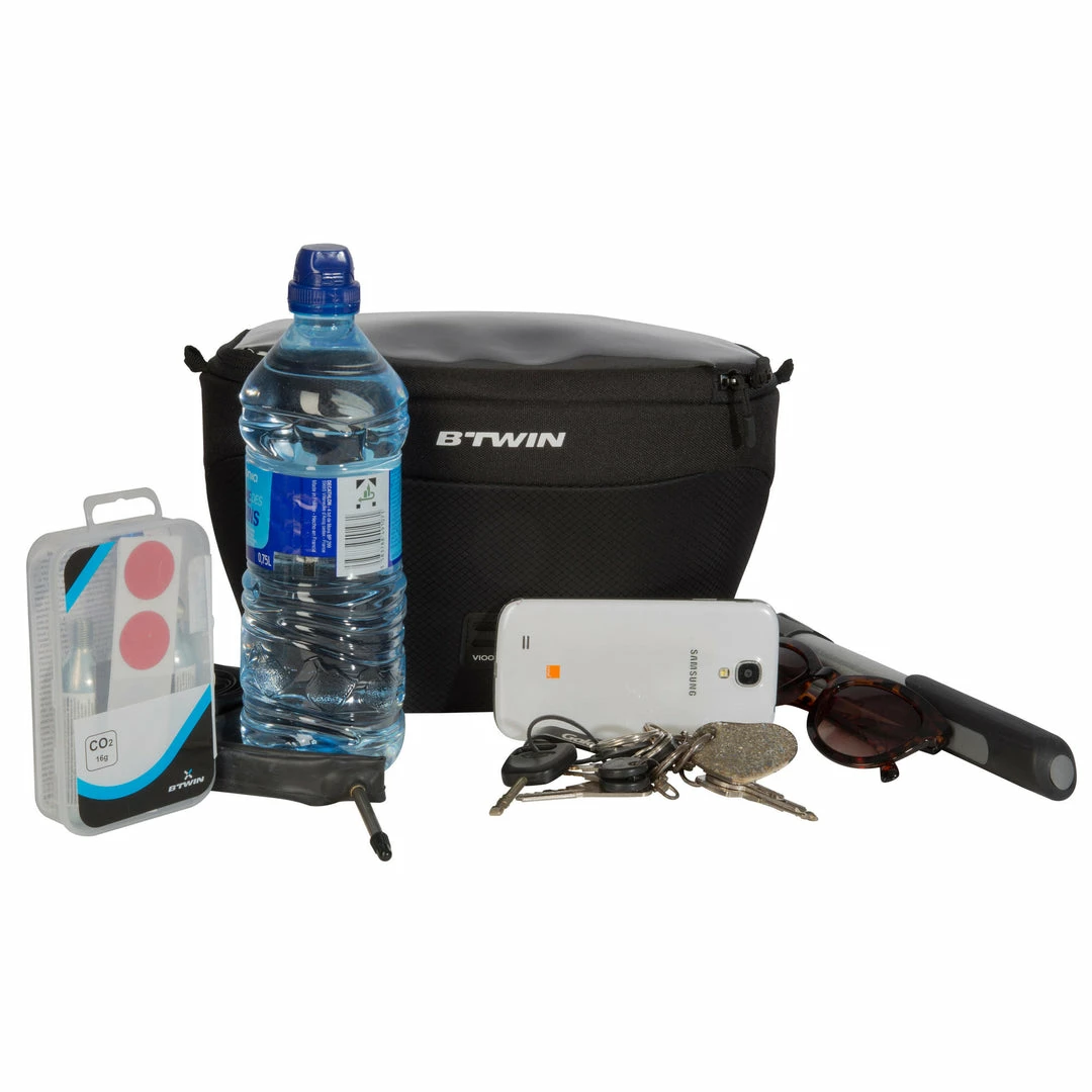 Capacity : Capacity: 6 L. Can hold a mini pump, tools, and personal effects.