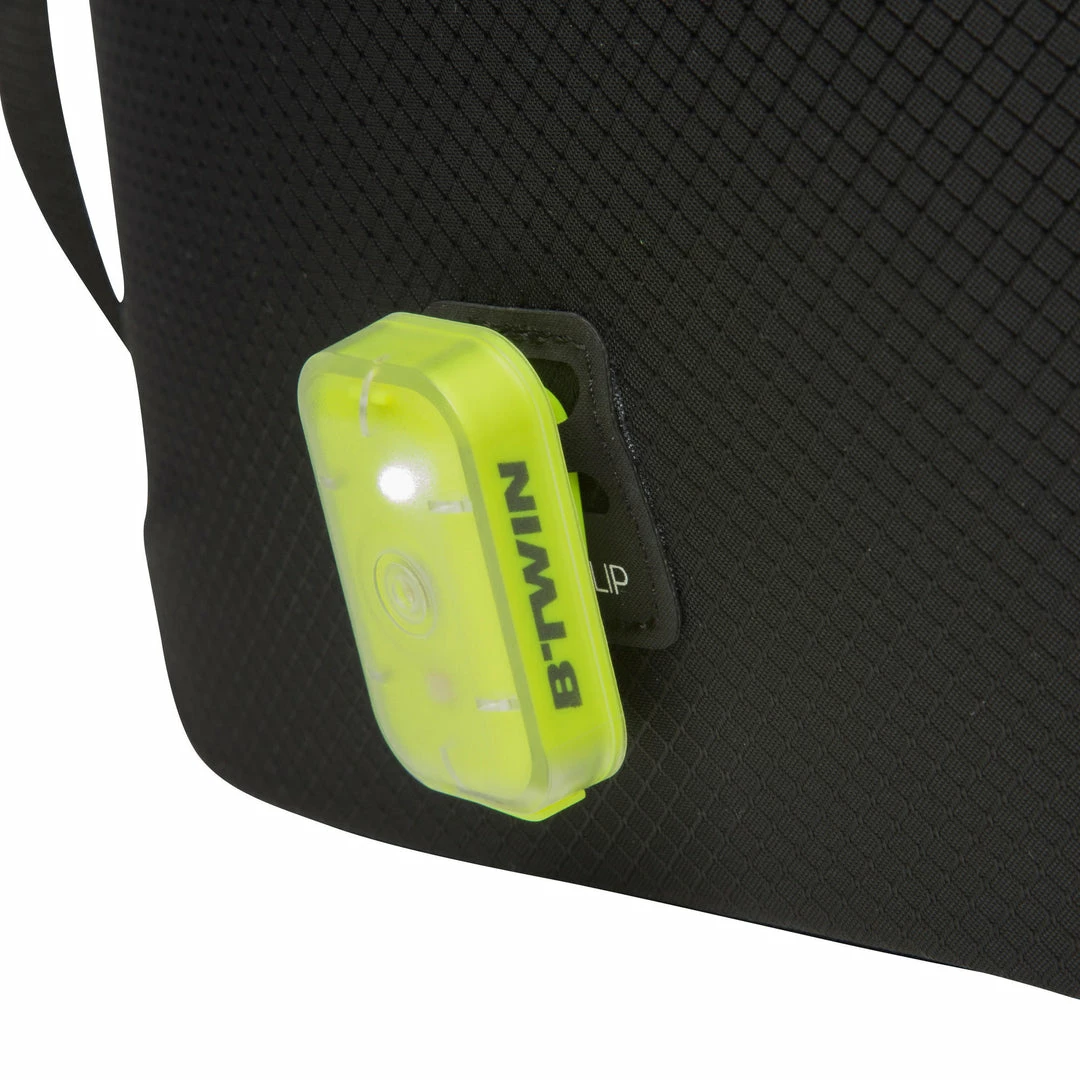 This product has a hook for attaching a VIOO Clip, an LED light that can be clipped on and off anywhere in an instant. With a red or white light that can be used in continuous or flashing mode, the Vioo Clip makes you clearly visible from up to 130 yds away. Battery life is 9 hours in flashing mode, 4ยฝ hours in continuous mode. Easy to charge using a USB cable.