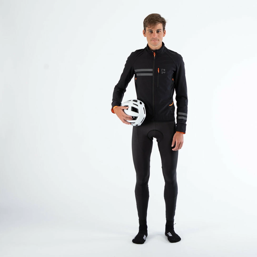 This softshell jacket is perfect for winter rides. It has a membrane that protects from the wind while remaining breathable, plus a soft fleece lining to keep you warm.