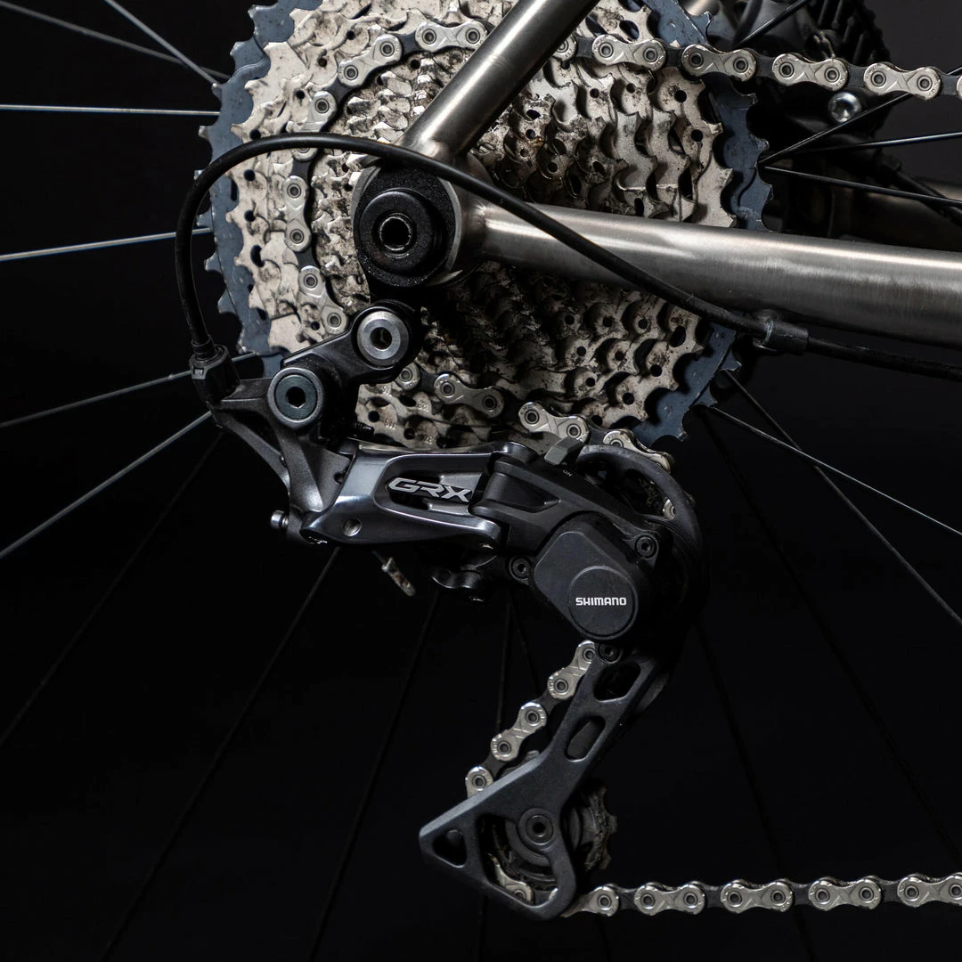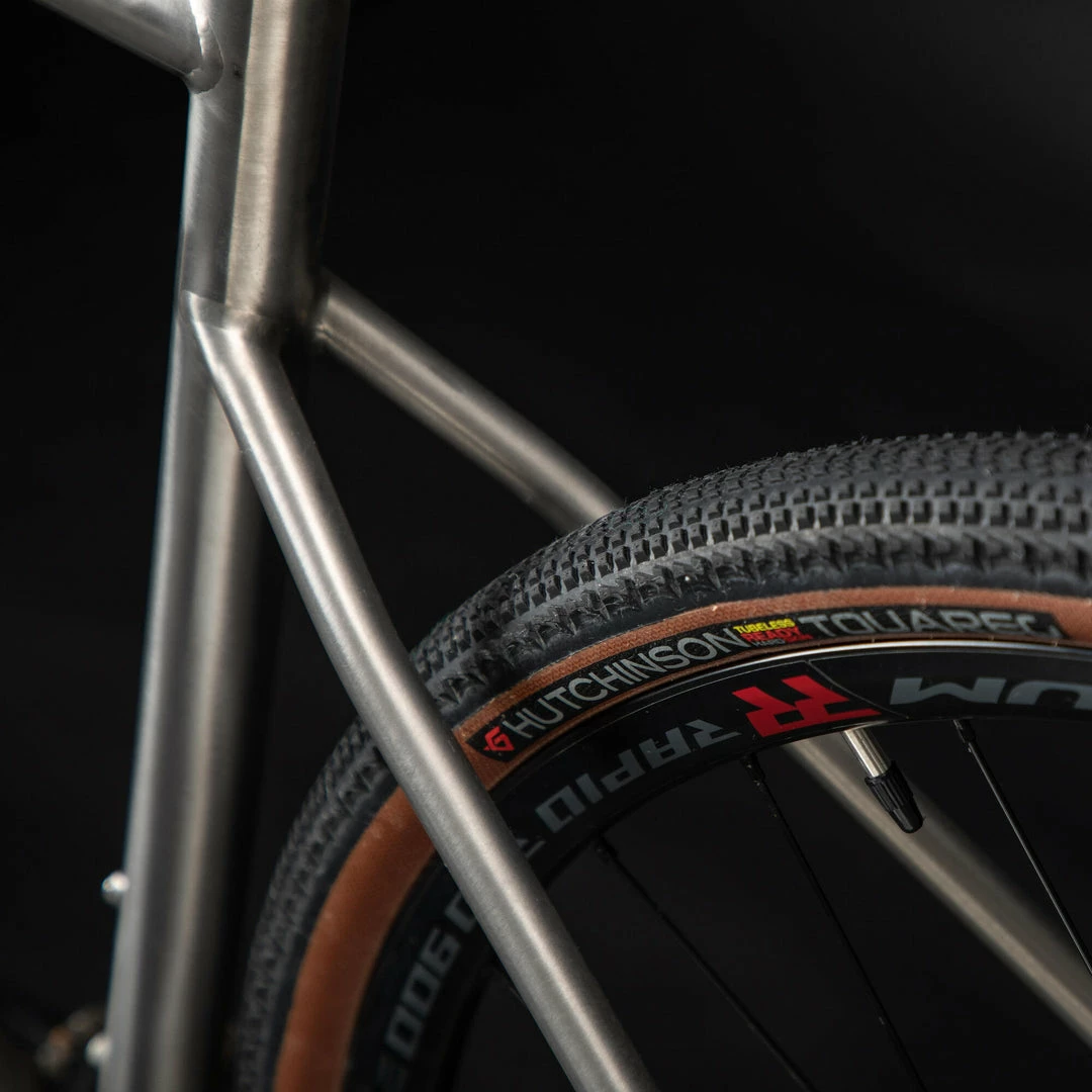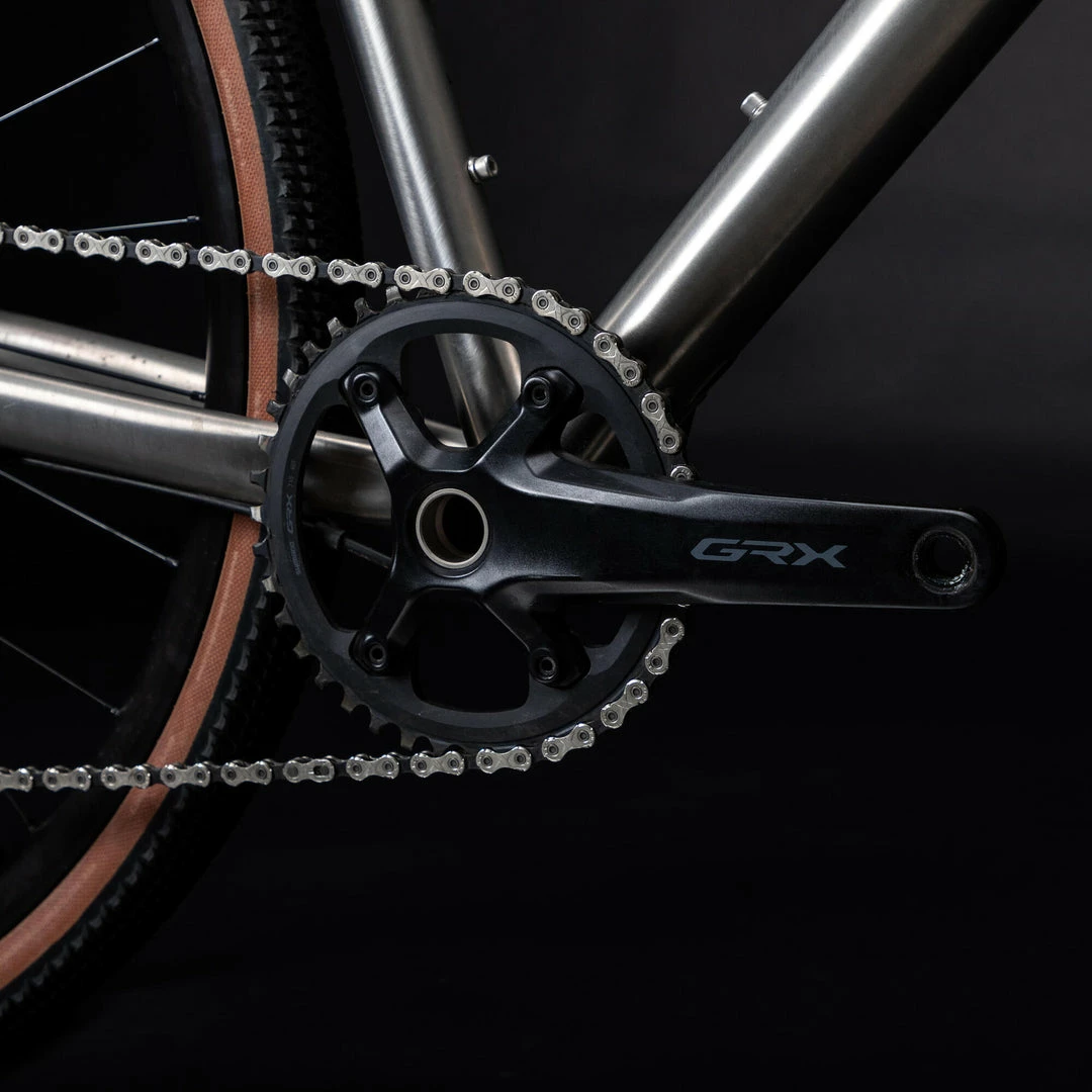 This titanium gravel bike is quite possibly the most comfortable bike we have ever designed. Grade 9 titanium frame, carbon fork and steerer tube, Fulcrum RR900 Tubeless wheels, Shimano GRX drivetrain