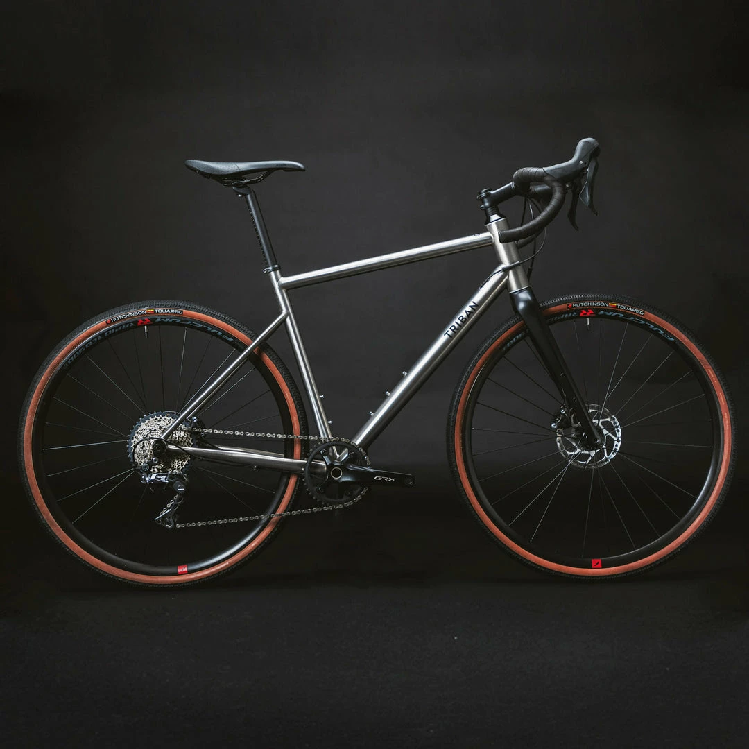 Titanium gravel frame designed in collaboration with Dedacciai, the Italian experts in tube and frame manufacturing, and hand welded. The frame’s geometry is designed to be comfortable and dynamic, creating a simple, long-lasting bike. Triban GRVL geometry for a better balance between comfort, steering, and performance
