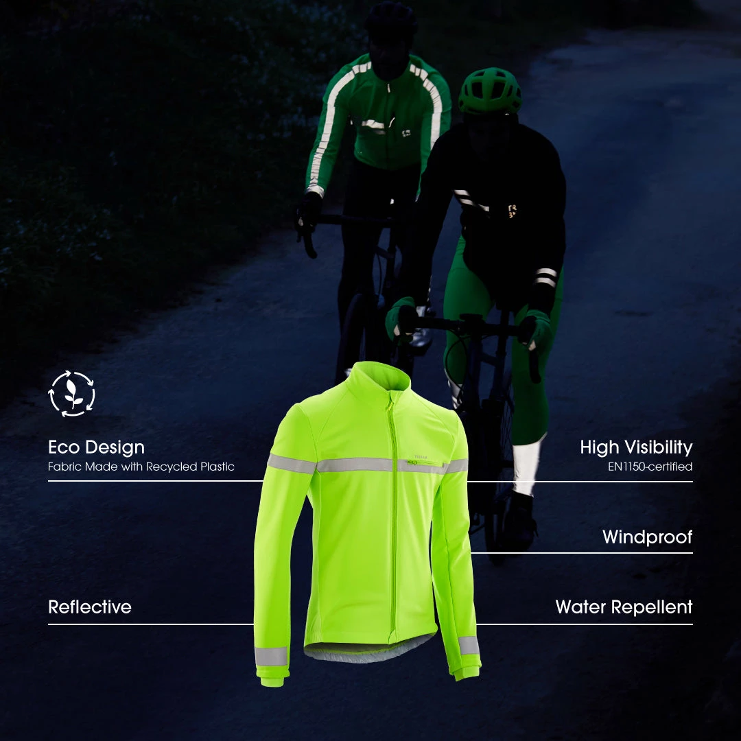 We’ve designed this eco-friendly road cycling jacket to allow beginners to cycle comfortably, even in winter, while remaining visible.