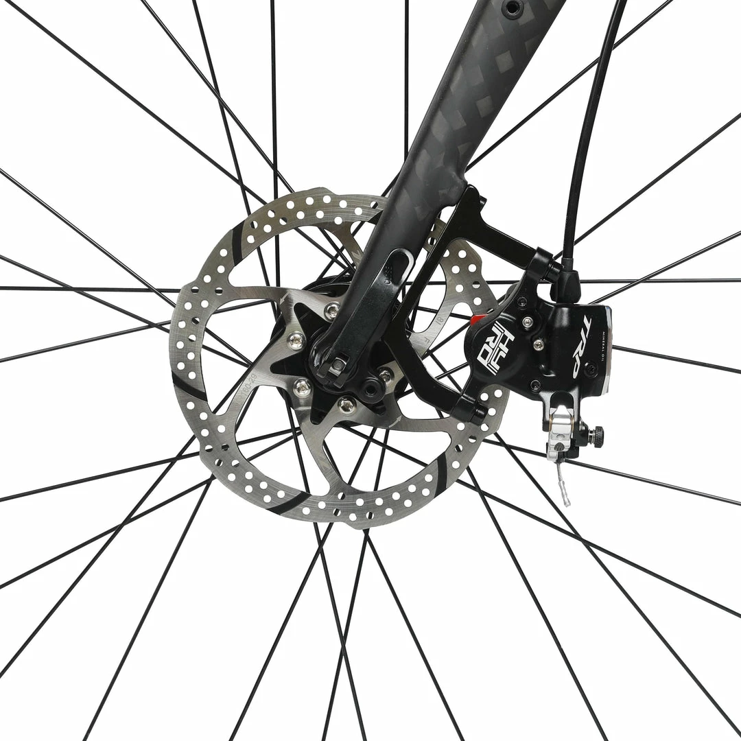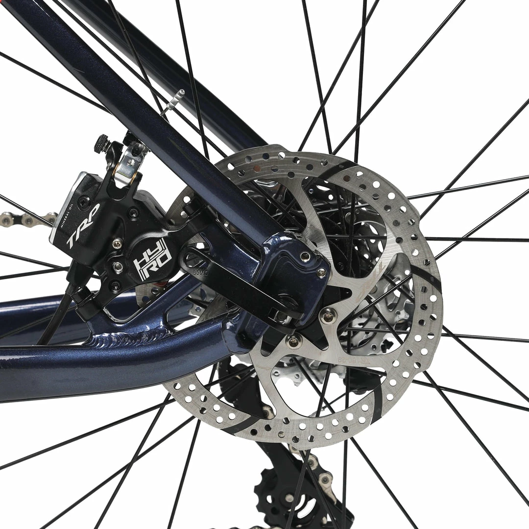 TRP HY/RD disc brakes. Semi-metal TRP pad (version M515/M525) Mechanical pulling of hydraulic pistons, ensuring reliability and efficiency. 160 mm disc at the front and rear. Anti-compression JAGWIRE housing to ensure precision and efficiency of braking.