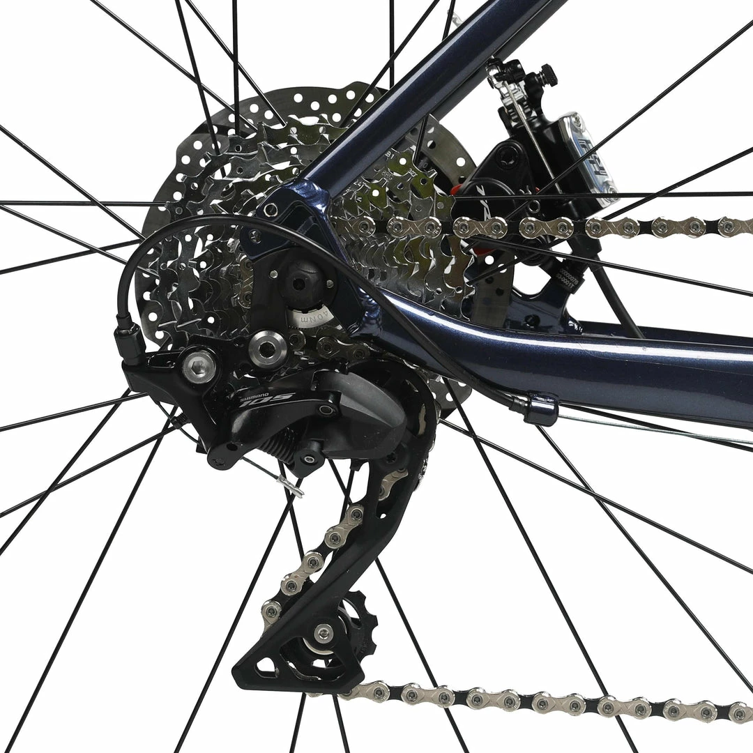 Microshift CS-H110 11S 11/32 cassette (11/12/13/14/15/17/19/21/24/28/32). Shimano RS 510 compact bottom bracket 50/34. Crank length varies according to size of bike: XS, S: 165 mm. M: 170 mm.