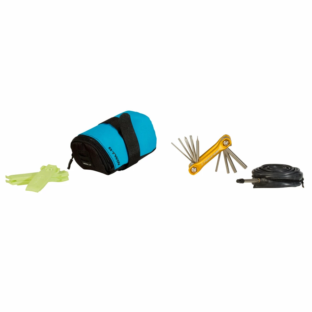 carrying the minimum accessories needed to perform bike repairs, and some small personal items.