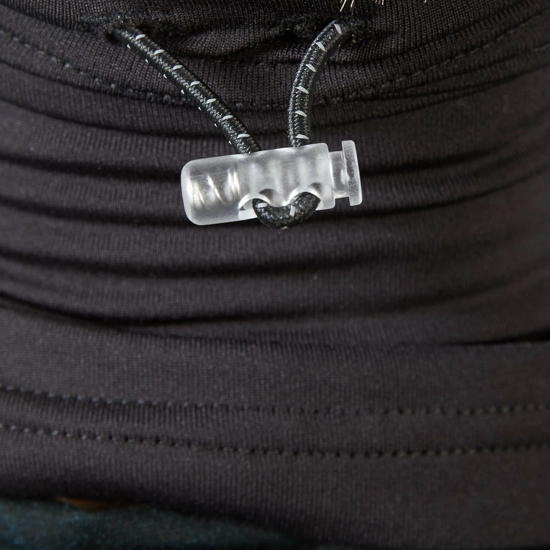 Windproof membrane on the front, laser-cut perforations to enhance breathing and prevent your glasses from fogging up. Thin, brushed, elasticated fleece throughout the rest of the product